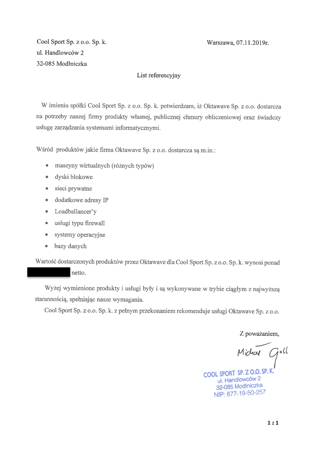 "Zawsze otrzymywaliśmy od Oktawave kilka różnych wariantów pod kątem architektury oraz bardzo merytoryczny support, dzięki któremu przed wyborem rozwiązania znaliśmy jego wady i zalety."